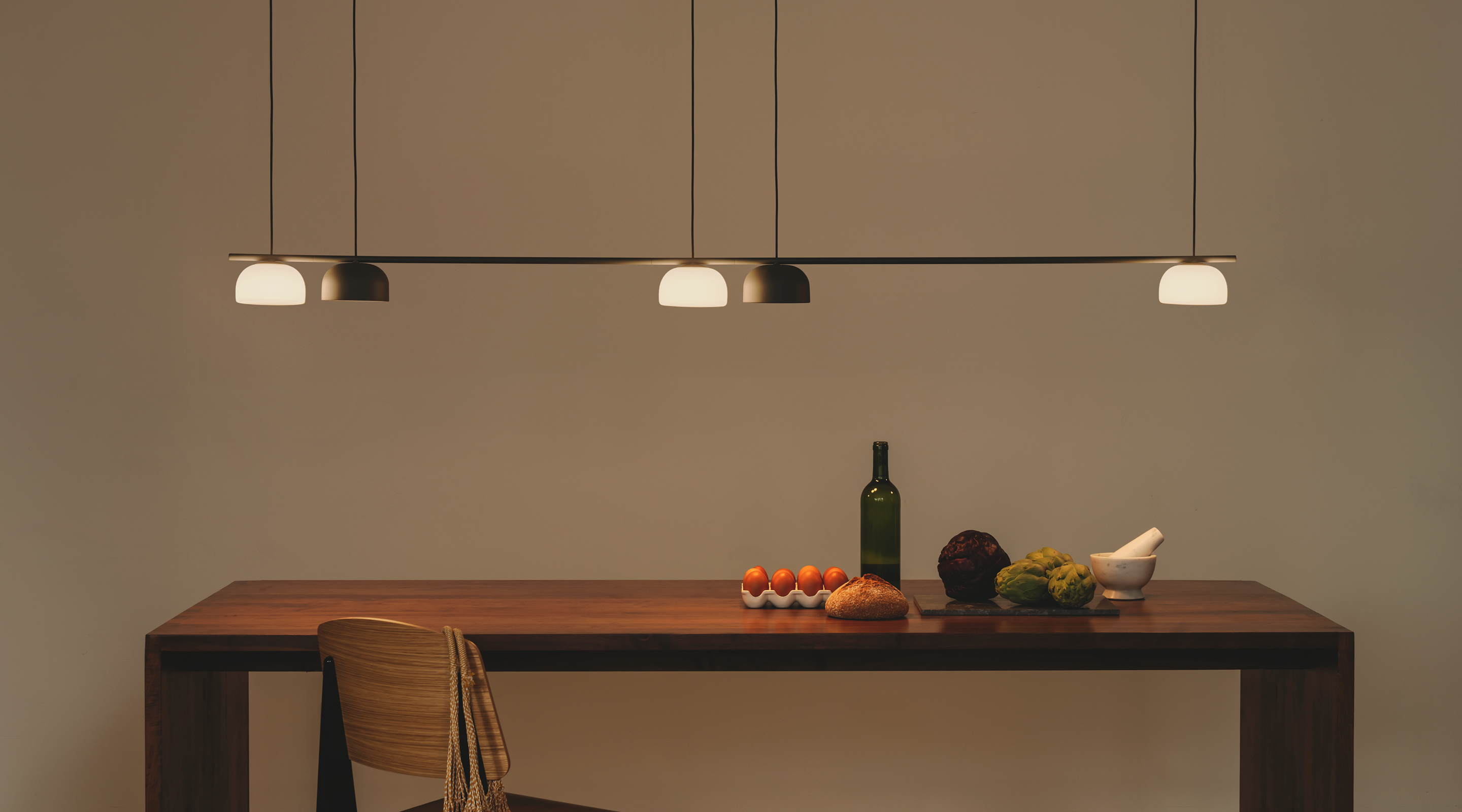 Belle, diseñada por Nahtrang Studio es una cautivadora familia de luminarias que redefine la iluminación decorativa gracias a su diseño y versatilidad sin igual. Con tres tipologías: individual, sistema lineal y chandelier; Belle se adapta a las necesidades de cualquier proyecto a través de una completa personalización que abarca forma (semicircular o cónica), material (cristal o metal), color, número de luminarias y distribución. Dispone en cinco elegantes acabados: Graphite Black, Silk Grey, Cement Grey, Oxide Red y Stone Brown.
